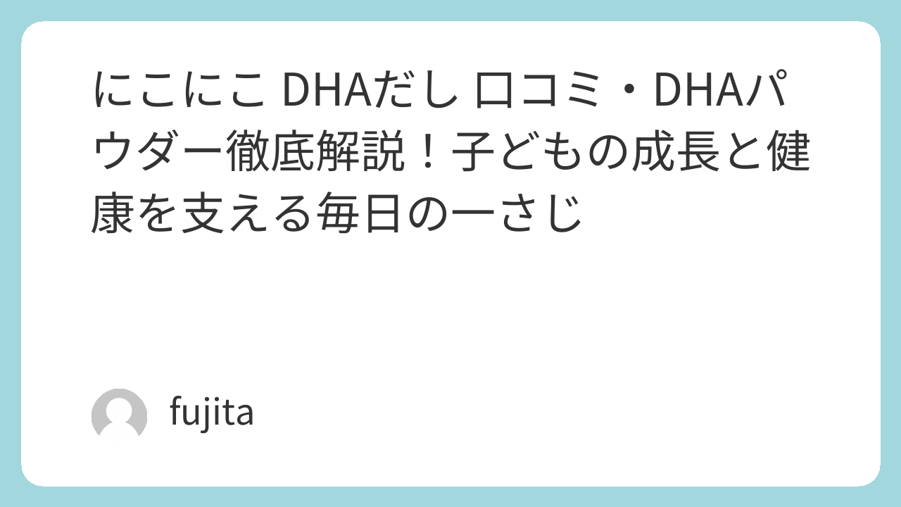 - まとめ|にこにこ DHAだしは“子どもの未来への投資”
